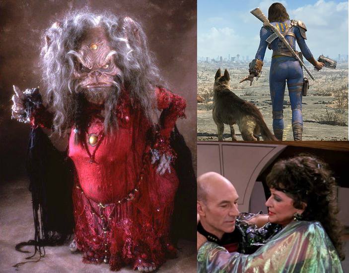 Aughra from The Dark Crystal, the Sole Survivor from Fallout 4, and Lwaxana Troi from Star Trek: TNG.