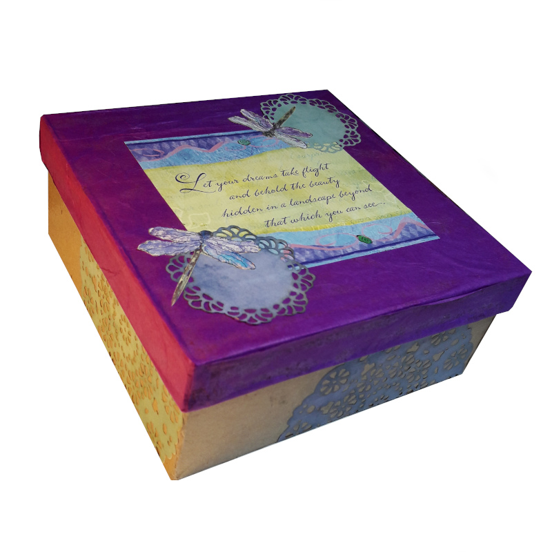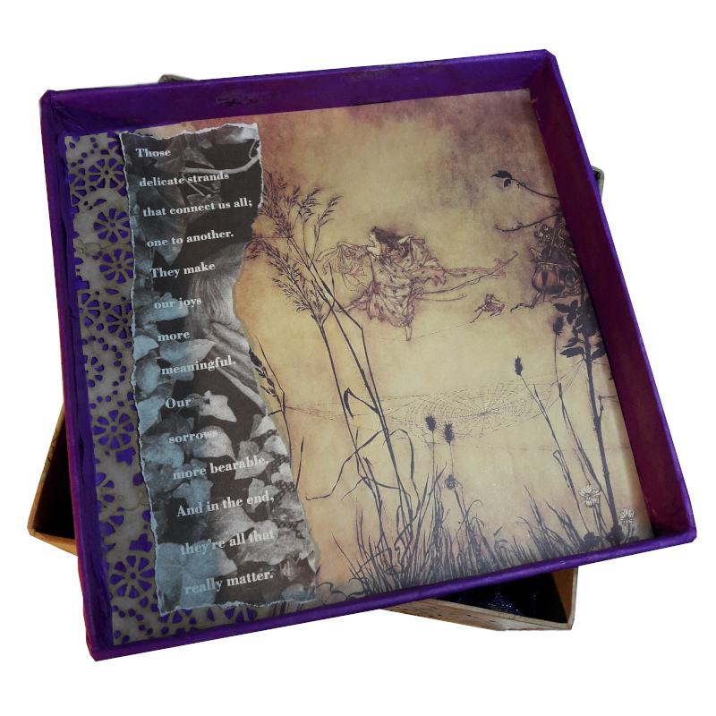 I also decorated a box to hold the crown. These pics show the outside of the box and the inside of the lid.