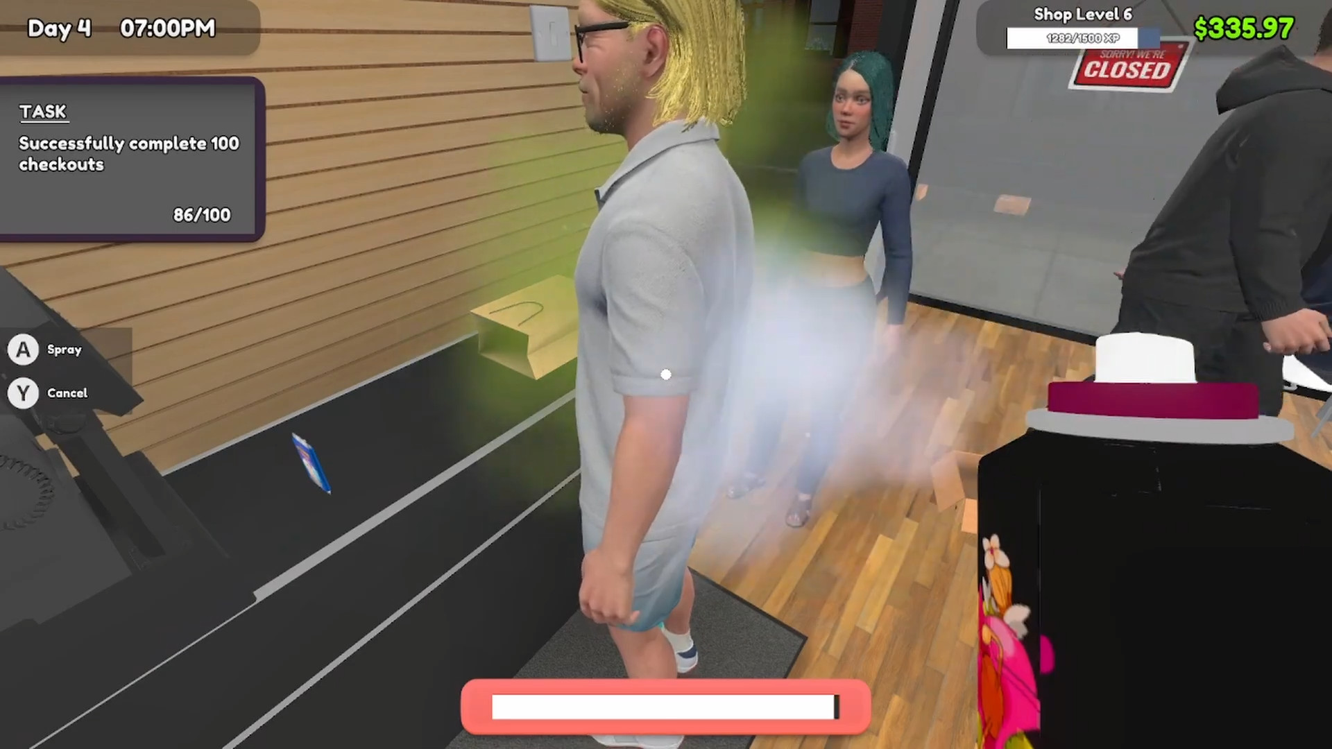 Players decorate, organize, expand, upgrade, price and order merch, pay bills, work the register, hire employees and run card tournaments in the shop. A big part of the gameplay is ripping open card packs, then selling the valuable cards found inside or bundling the less valuable cards into bulk boxes.